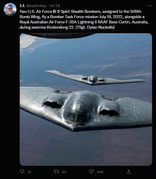 그는 2023년 로즈 퍼레이드와 로즈 볼 게임 행사에도 B-2기가 행사장 상공을 비행할 예정이었지만 이 번 일로 인해 B-1랜서 기종으로 대체되었다고 밝혔다.