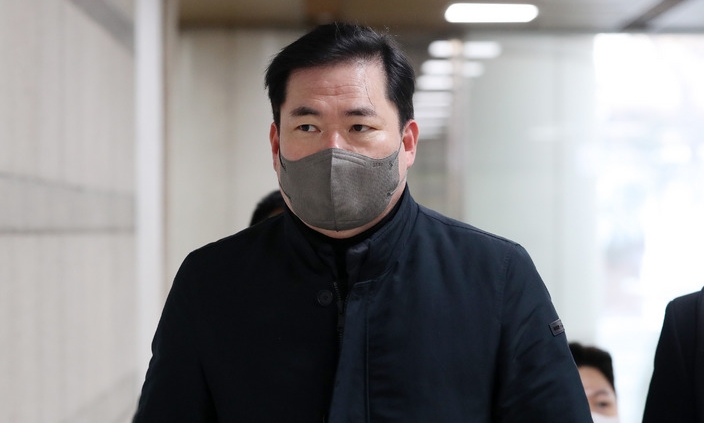 유동규 전 성남도시개발공사 기획본부장이 지난 23일 오전 서초구 서울중앙지법에서 열린 민주당 불법 대선자금 의혹 관련 정치자금법 위반 혐의 1차 공판준비기일에 출석하고 있다.