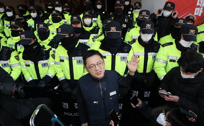민주노총 조합원들이 거센 항의와 함께 사무실 진입을 막아서면서 압수수색은 이뤄지지 않다가 양측이 협의한 끝에 일부 수사관들이 오전 9시55분께 사무실로 들어갔다.
