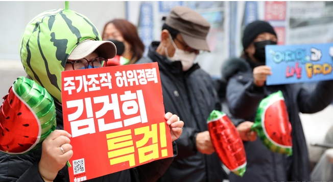 이들은 ‘법치파괴, 야당말살, 즉각 중지하라’라고 적힌 현수막을 걸고, 폴리스라인에 맞춰 서서 ‘윤석열 정권 검사독재 규탄한다’, ‘김건희 특검’, ‘윤석열 퇴진’ 등이 적힌 손팻말을 들고 서 있었다.