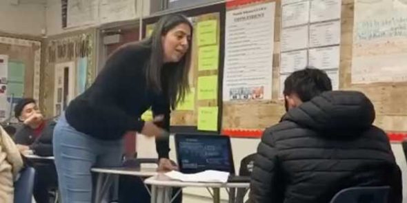 폰타나의 세쿼이아 중학교의 영어 교사는 수업 도중 한 학생에게 지속적으로 N-단어를 말하고 따라 하라고 소리치고 있다. 스펠링을 어떻게 쓰냐고 묻고 계속 따라 발음하라고 소리친다.