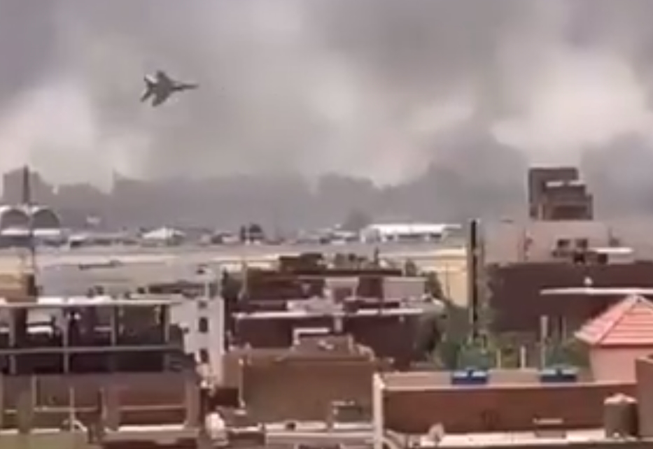 Sudanese (Mig-29) Jet flies over Kahrtoum while smoke rises in the background as battles between Police forces, Military and RSF intensifies.#Sudan #SudaneseArmy #sudan_update pic.twitter.com/LHT9tF9e7d