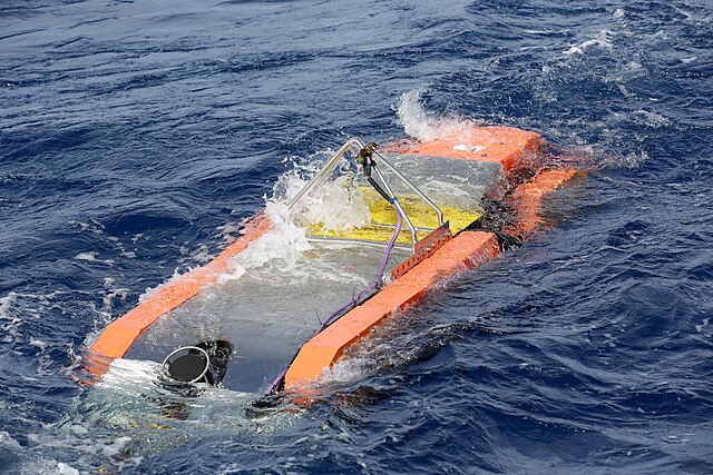 The Dragon Prince deep tow fish on the surface of the water after completing the first stage of the search for the missing Malaysia Airlines flight MH370.[위키미디어 커먼스]