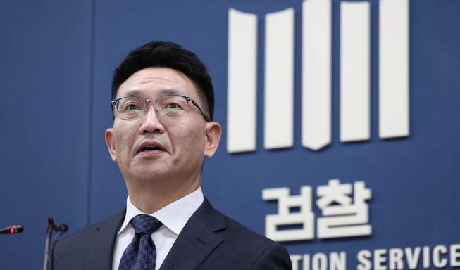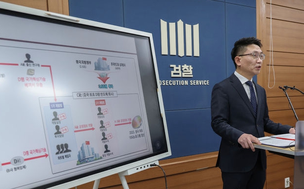 김윤용 서울중앙지방검찰청 정보기술범죄수사부 부장검사가 23일 서울 서초구 서울고등검찰청 기자실에서 세계 1위 K반도체 국가핵심기술 국외 유출사건 수사결과 발표를 하고 있다.