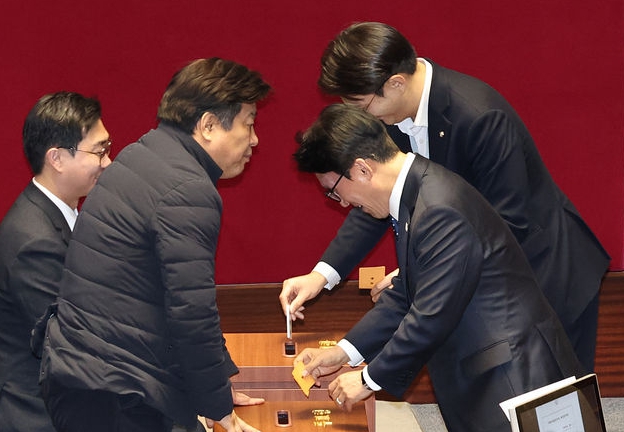 김민석 국무총리가 26일 오후 서울 여의도 국회에서 열린 제432회 국회(임시회) 제8차 본회의에서 형법 일부개정법률안(대안)에 대한 무제한토론 종결동의의 건 투표를 하고 있다. 2026.02.26. kgb@newsis.com