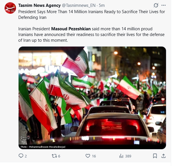 그가 밝힌 1400만이라는 숫자는 과거 이란 정부가 전쟁 중 문자 메시지와 언론을 통해 모집했던 자원봉사자 수의 2배에 달하는 수치이다.