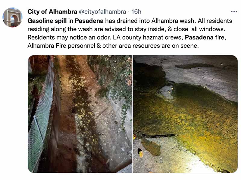 알함브라시는 즉각 개솔린 유출 사고를 트위터를 통해 알리고, 지역 주민들에게 집에 머물것을 당부하기도 했다.