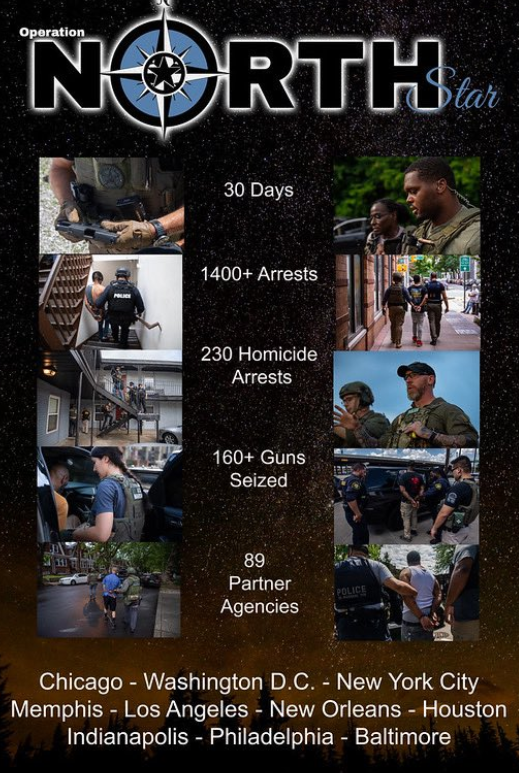 무어 국장은 “연방 법무부와 검찰, 마샬 서비스, 각 지역 경찰국 등 89개 사법기관이 공조해 이 지난 6월 한 달 간 ‘노스 스타’ 작전을 전개해 범죄자 1,500명 이상을 체포하고 다량의 불법무기들도 압수했다”고 밝혔다.