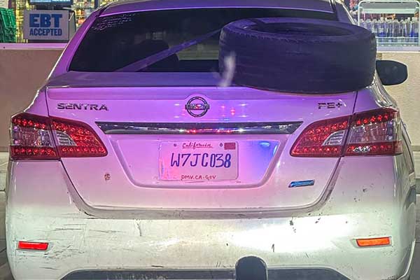 CHP 머세드 지부는 페이스북을 통해 한 경찰관이 닛산 센트라 차량을 정지시켰다고 밝혔다. 그 이유는 차량 뒷번호판에서 “무언가 이상한 점”을 발견했기 때문이다.