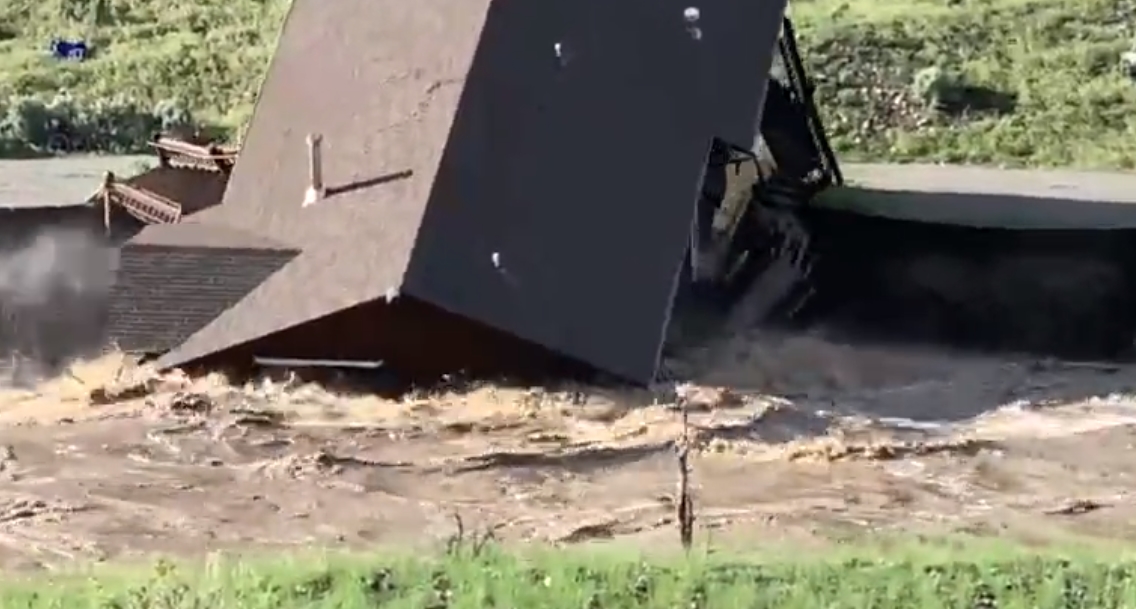 옐로스톤 대홍수 전면 폐쇄..1만여명 대피, 급류에 집 폭삭