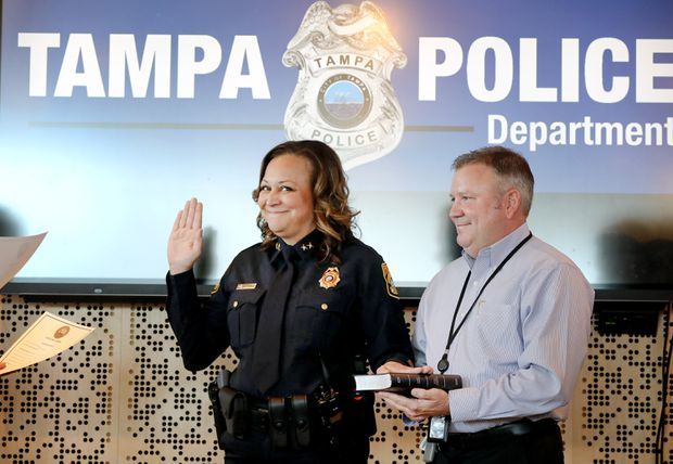 지난 3월26일(현지시간) 플로리다주 탬파 경찰서장 취임식에서 선서하는 메리 오코너. 출처: City of Tampa