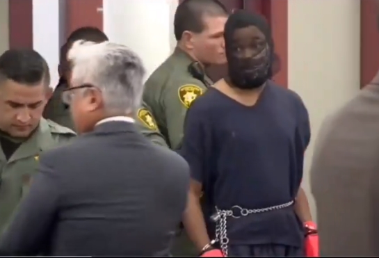 레든의 얼굴엔 침을 뱉거나 공격하지 못하게 입마개가 씌워졌고, 손엔 쇠사슬 벨트와 연결된 수갑을 채우고 장갑까지 끼게 했다. 마치 영화 ‘양들의 침묵’에 등장하는 연쇄살인마 한니발 렉터가 떠오르게 하는 모습이었다. 여기에 증원된 보안 요원들이 레든을 둘러쌌다.