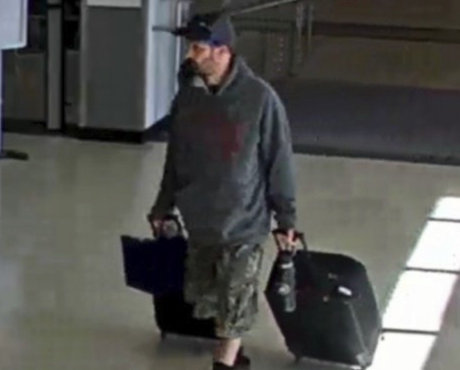 검사 결과 그의 수트케이스 안에서 밀납 종이와 비닐 등으로 겹겹이 싼 약 3인치 ( 8cm)직경의 폭발물이 발견되었다. 그는 폭발물 소지 혐의와 폭발물이나 인화물질을 항공기 안에 반입하려 한 혐의 등으로 체포되었다고 검찰은 밝혔다.