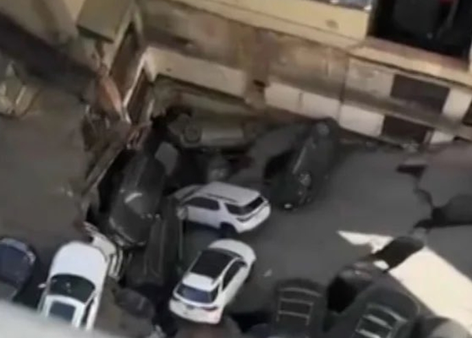 18일 주차장 2층 일부가 무너져 1층 주차장을 덮쳤다. 사고 현장은 차량들이 뒤엉켜 아수라장이 됐다.