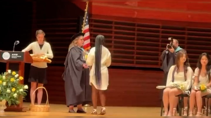 소셜 미디어에 공개된 영상을 보면 그녀는 졸업을 자축하고 싶어 ‘그리디(Griddy)’ 댄스를 추면서 무대로 올라갔고 교장은 무뚝뚝한 표정으로 지켜봤다.