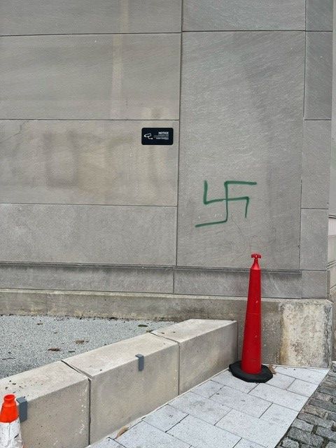 미국의 한 유대인 학살 추모 공원에 새겨진 하켄크로이츠 낙서로 인해 미국 사회가 충격에 빠졌다.