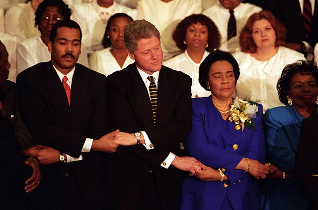 President Bill Clinton joins hands with Dexter King and Coretta Scott King[위키미디어커먼스]