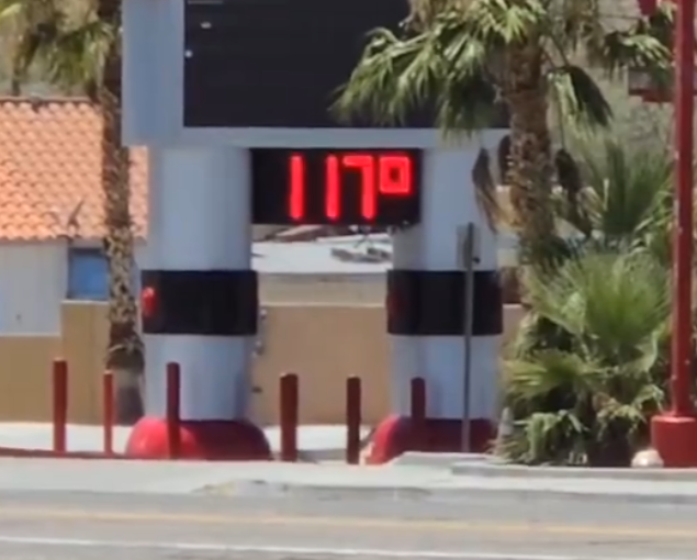 8일 오후 1시 30분 캘리포니아 베이커스필드 거리의 온도계가 117도를 기록했다