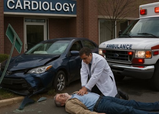 미국에서 운전 중 심장마비로 쓰러진 남성이 마침 심장 전문 병원 앞에서 사고가 나 목숨을 건진 소식이 전해졌다.