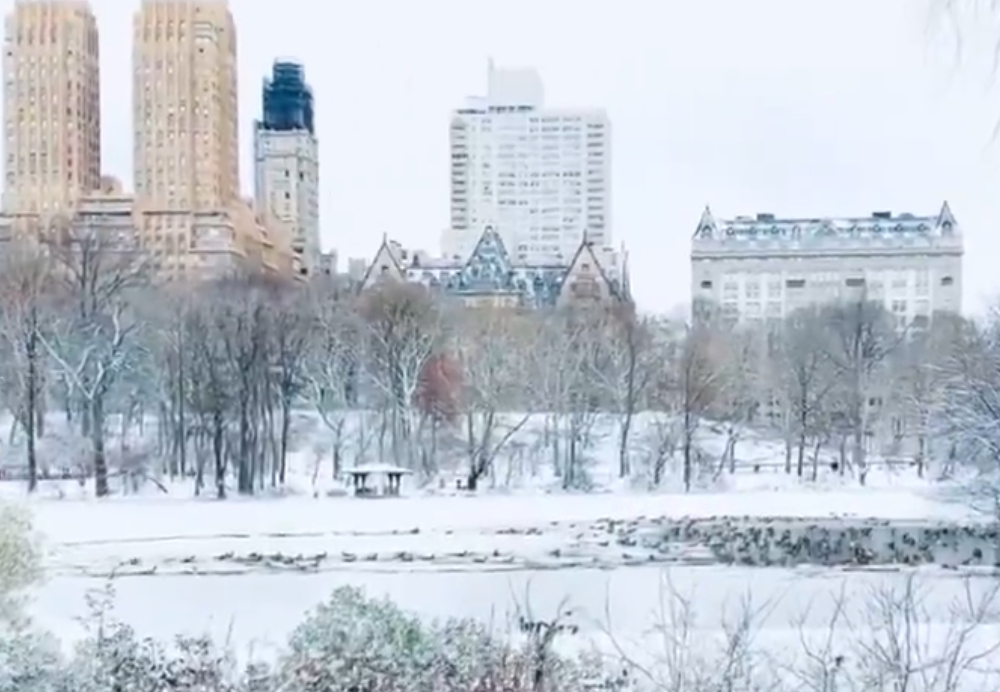 뉴욕 센트럴파크의 호수가 기록적인 폭설 이후 새하얀 눈으로 덮이며 겨울 동화 같은 풍경을 연출하고 있다. 출처: X(Twitter) @isardasorensen