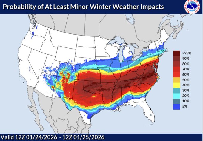 이번 겨울 폭풍은 23일 시작돼 25일까지 계속될 것으로 예상되며, 폭설과 함께 얼음비나 진눈깨비 등 모든 종류의 겨울철 강수 현상을 동반할 것으로 예상된다.