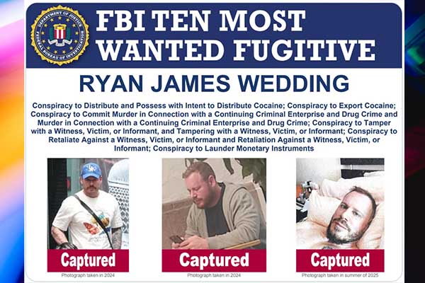 연방 당국은 전직 올림픽 스노보더이자 대규모 마약 밀매 수사와 관련해 FBI ‘10대 최우선 지명 수배자’ 명단에 올랐던 라이언 웨딩이 체포됐다고 금요일 발표했다.
