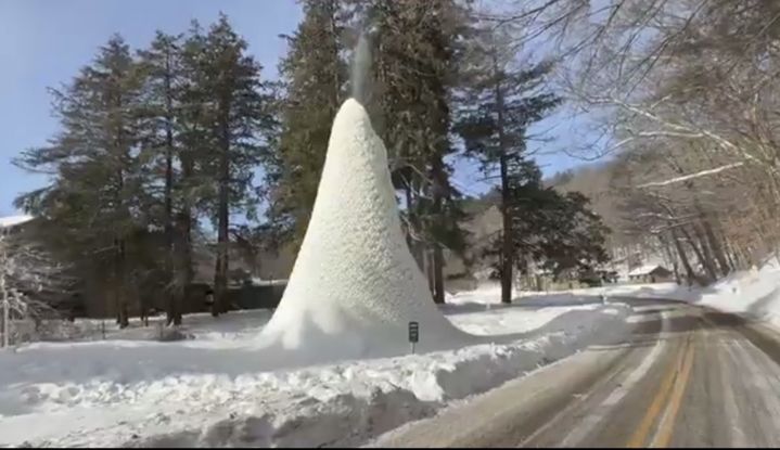 혹한 속 뉴욕 공원에 ‘얼음 화산’ 등장…높이 9m까지 자라