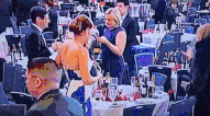 총격사건이 발생한 워싱턴 DC 힐든 호텔 백악관 출입기자 만찬장에서 한 참석자가 와인을 챙기고 있다. 영상 X 캡처