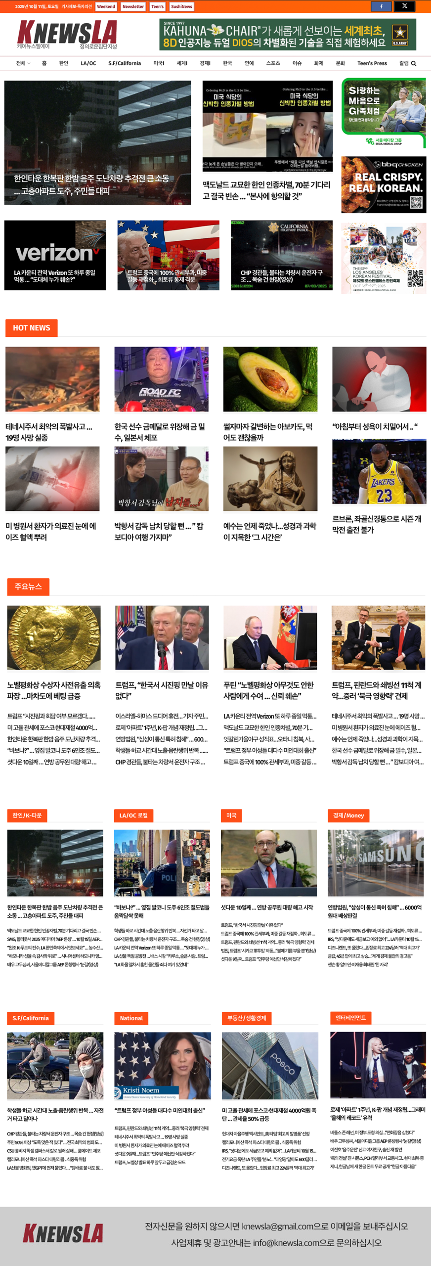 [K-News LA 뉴스레터] 2025년 10월 11일 토요일