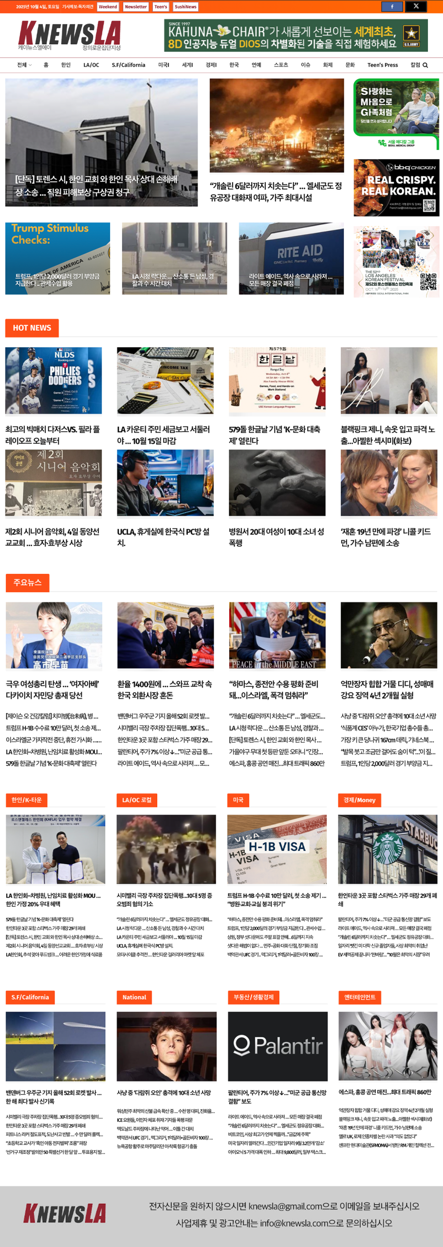[K-News LA 뉴스레터] 2025년 10월 4일 토요일
