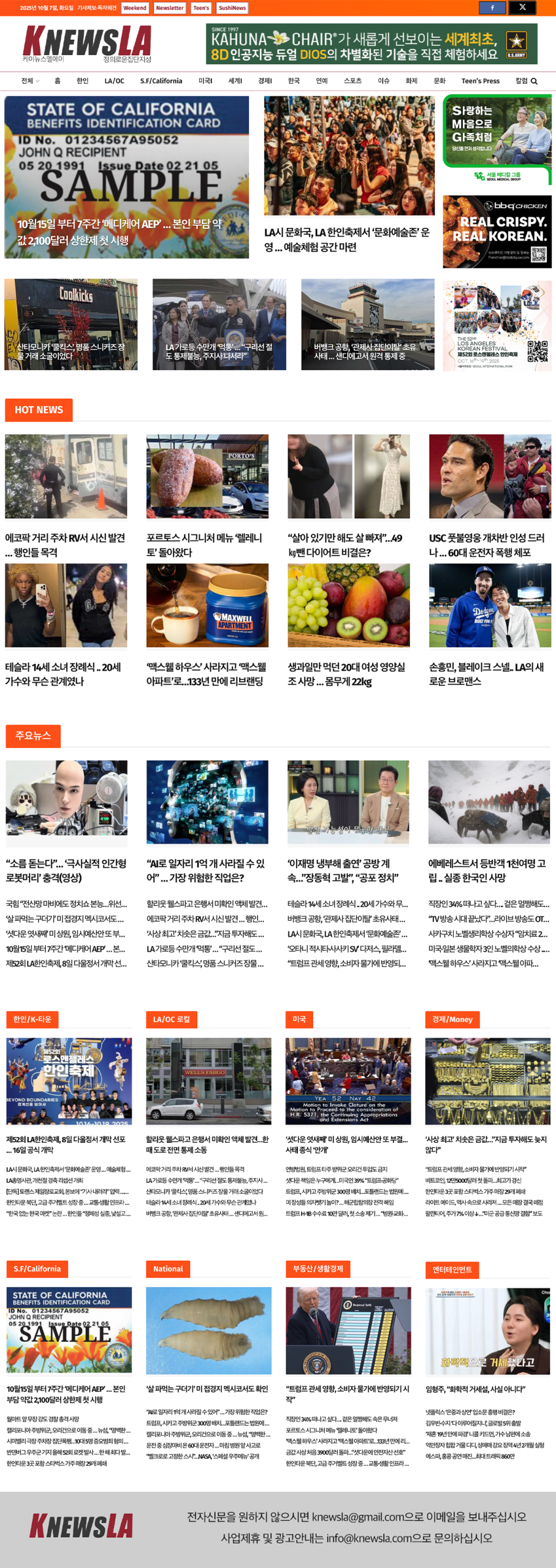 [K-News LA 뉴스레터] 2025년 10월 7일 화요일