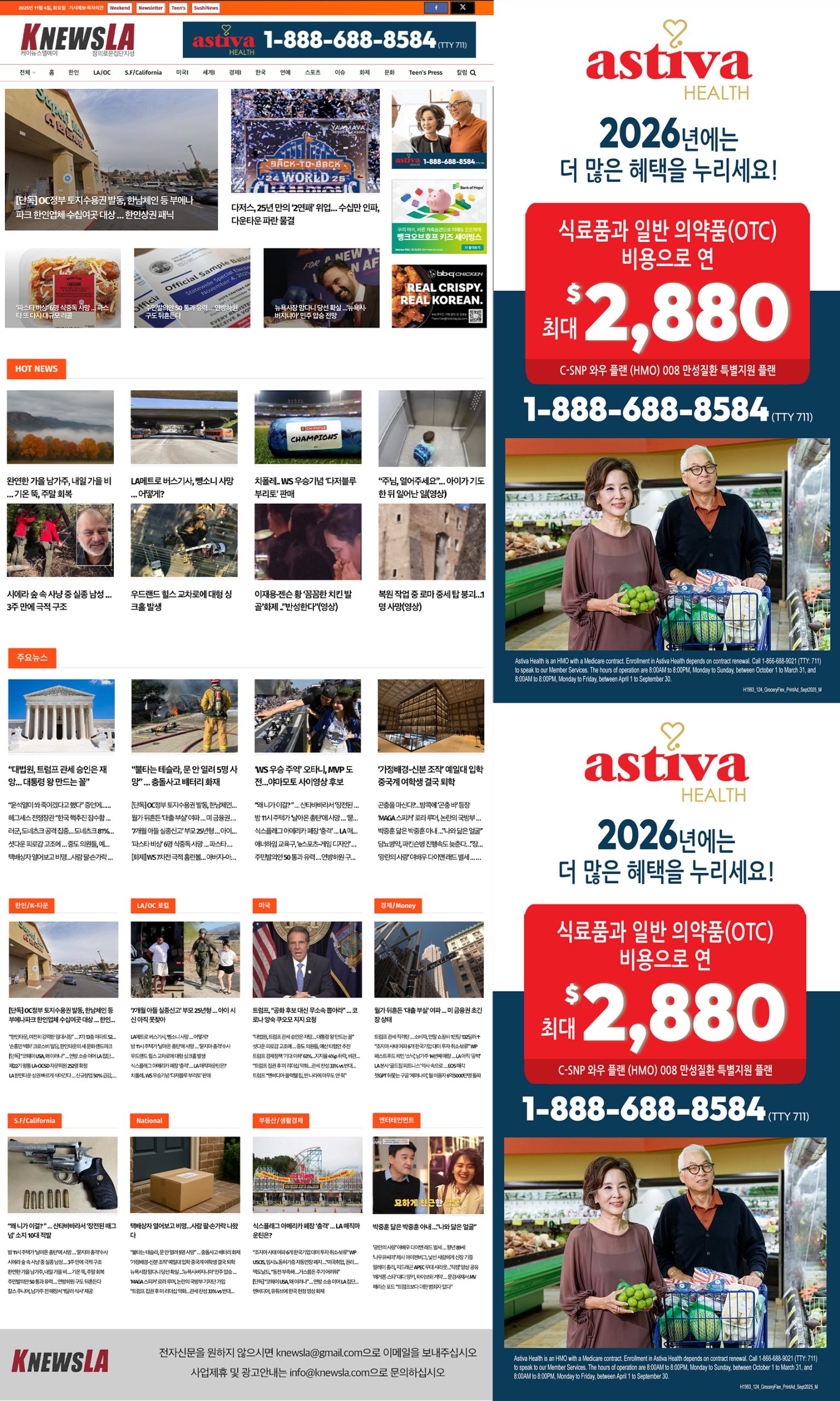 [K-News LA 뉴스레터] 2025년 11월 4일 화요일