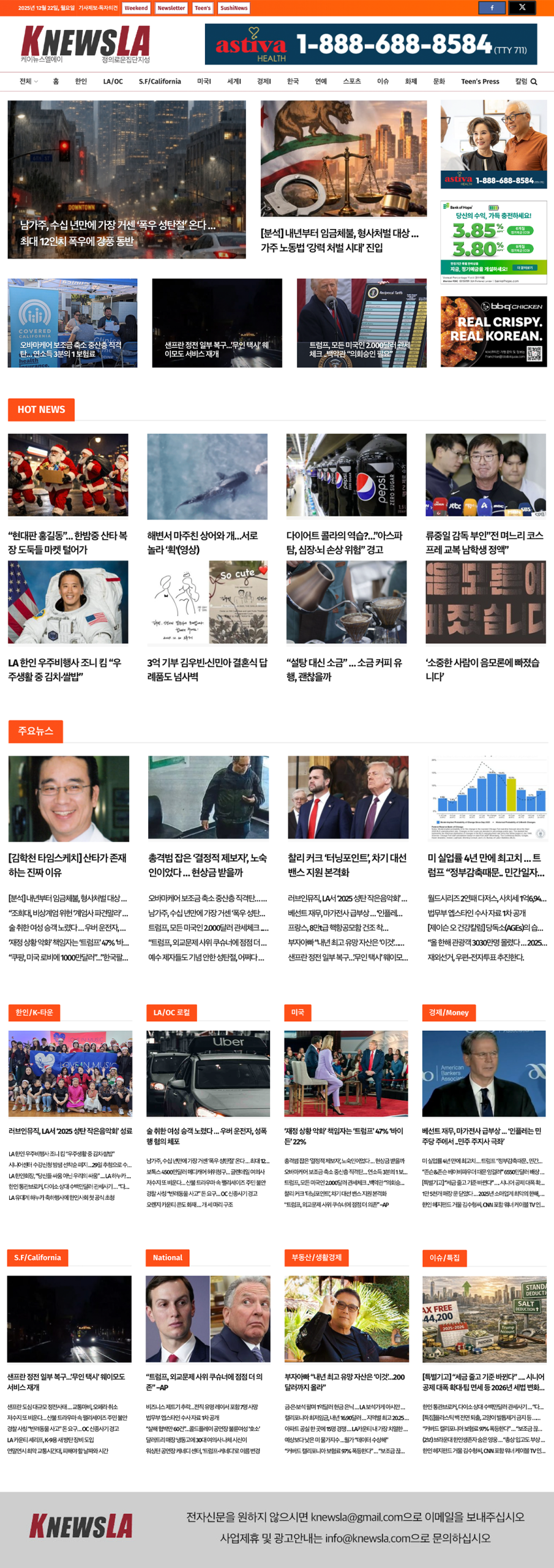 [K-News LA 뉴스레터] 2025년 12월 22일 월요일