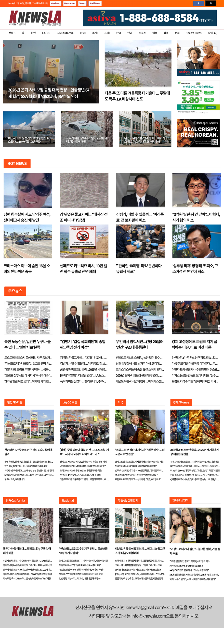 [K-News LA 뉴스레터] 2025년 12월 26일 금요일