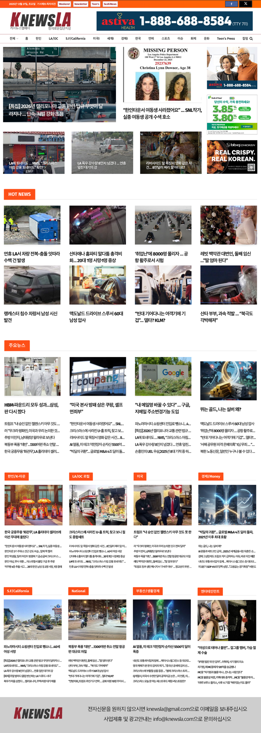 [K-News LA 뉴스레터] 2025년 12월 27일 토요일