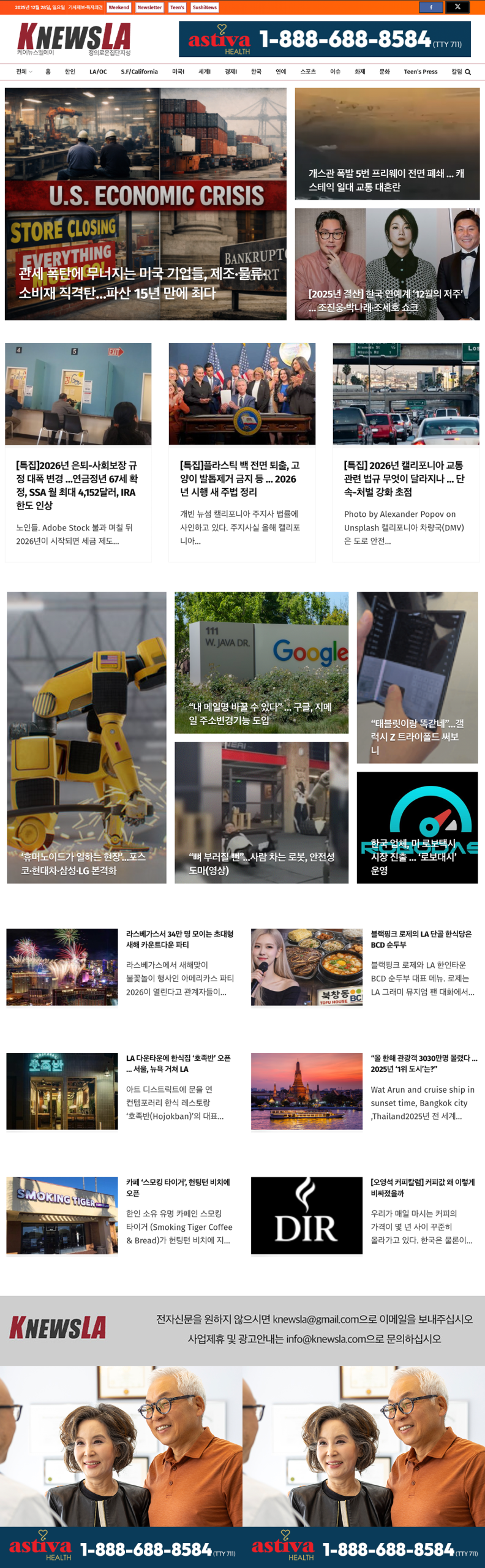 [K-News LA 뉴스레터] 2025년 12월 28일 일요일