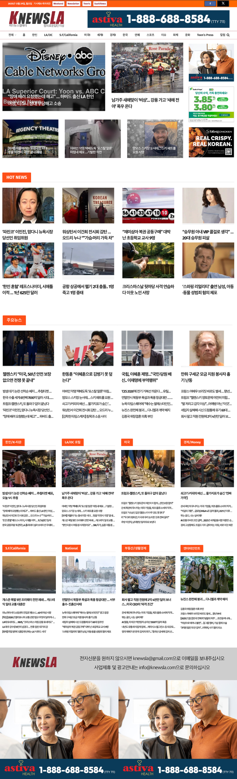 [K-News LA 뉴스레터] 2025년 12월 29일 월요일