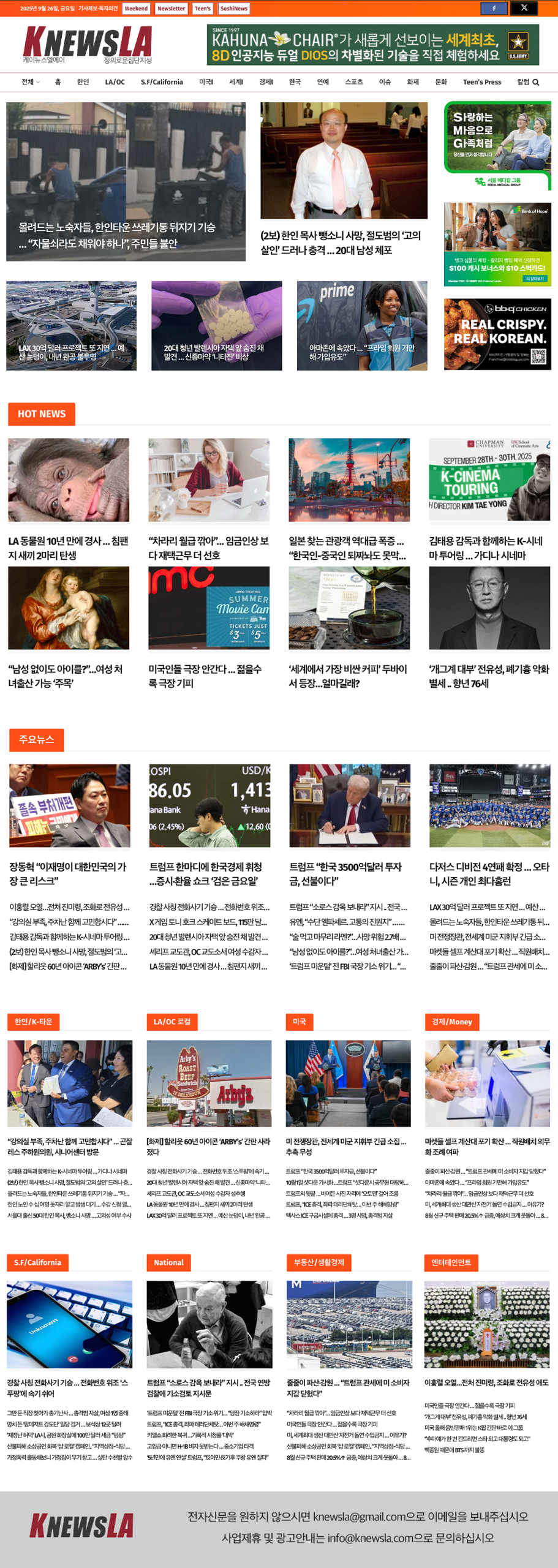[K-News LA 뉴스레터] 2025년 9월 26일 금요일