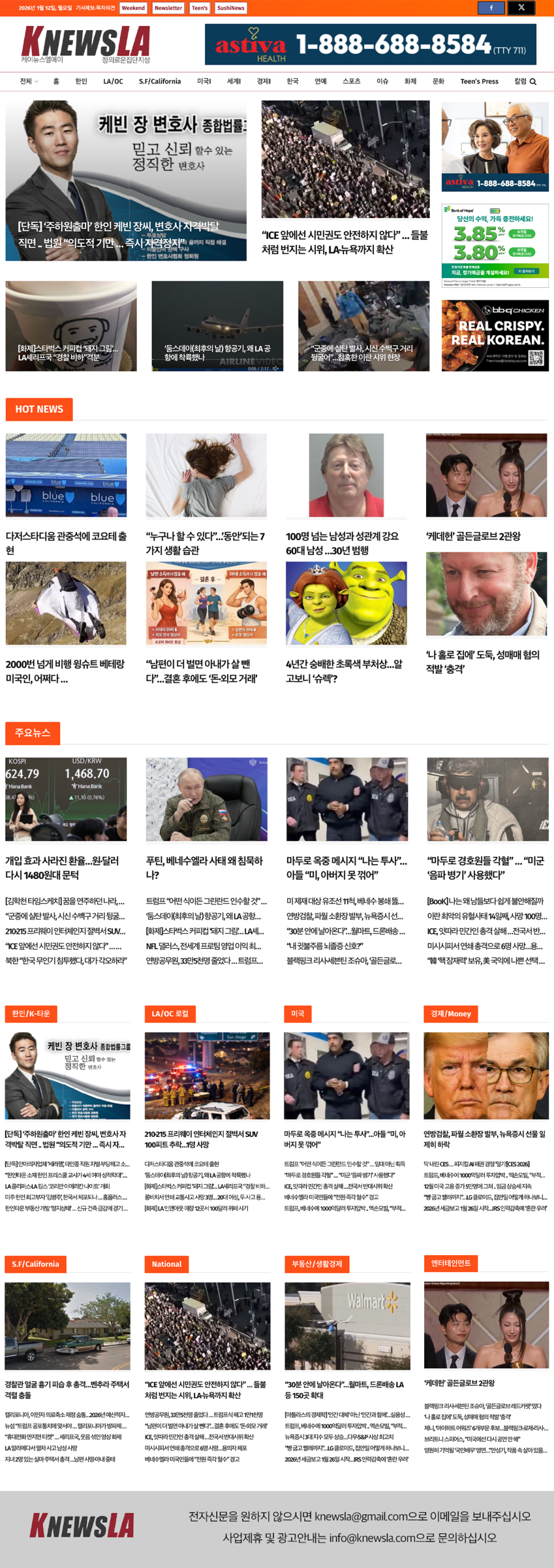 [K-News LA 뉴스레터] 2026년 1월 12일 월요일