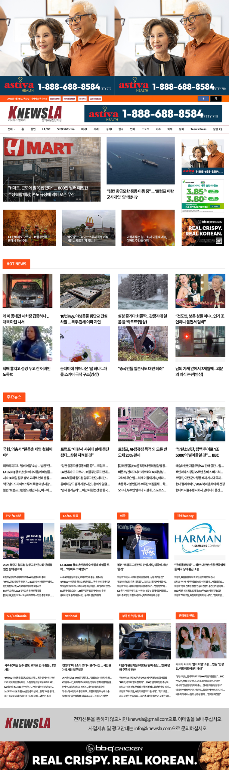 [K-News LA 뉴스레터] 2026년 1월 15일 목요일