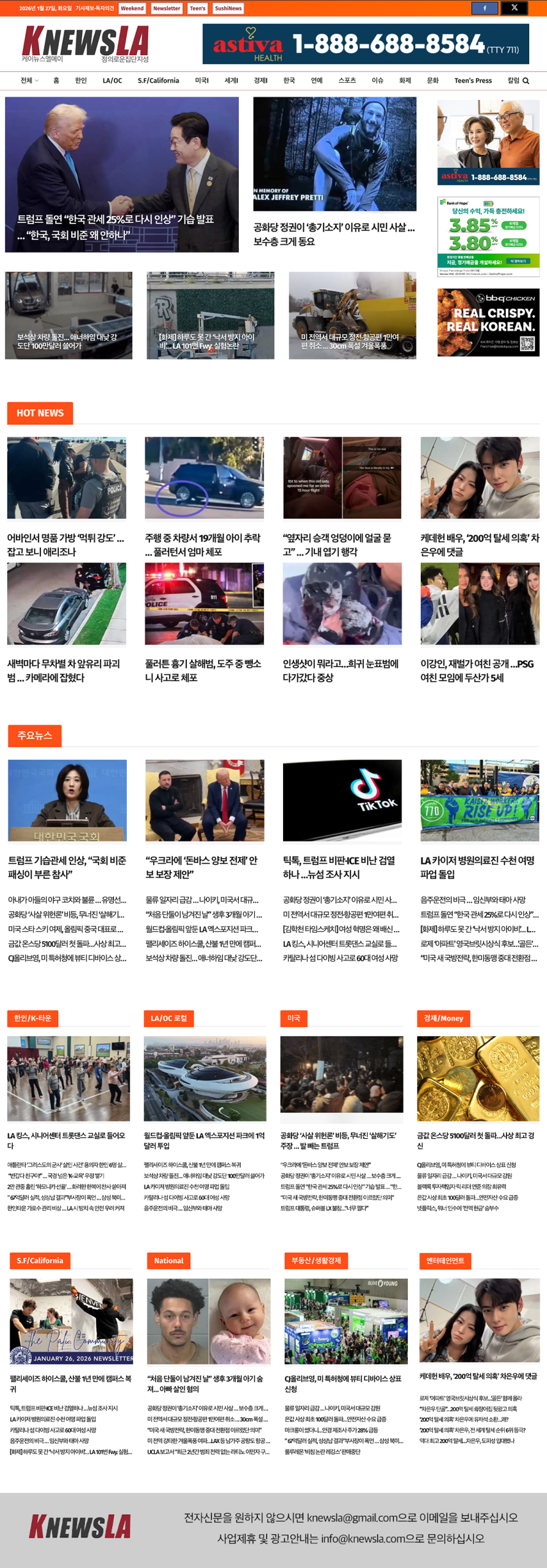 [K-News LA 뉴스레터] 2026년 1월 27일 화요일