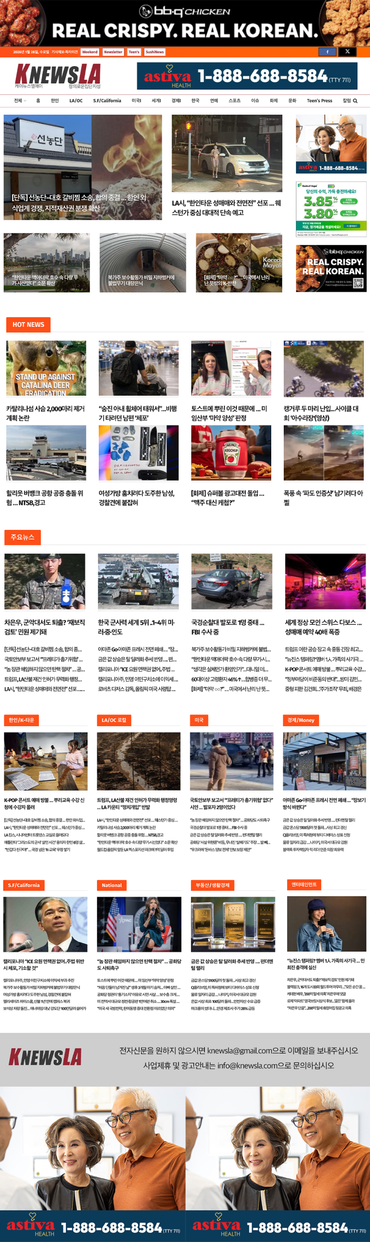[K-News LA 뉴스레터] 2026년 1월 28일 수요일
