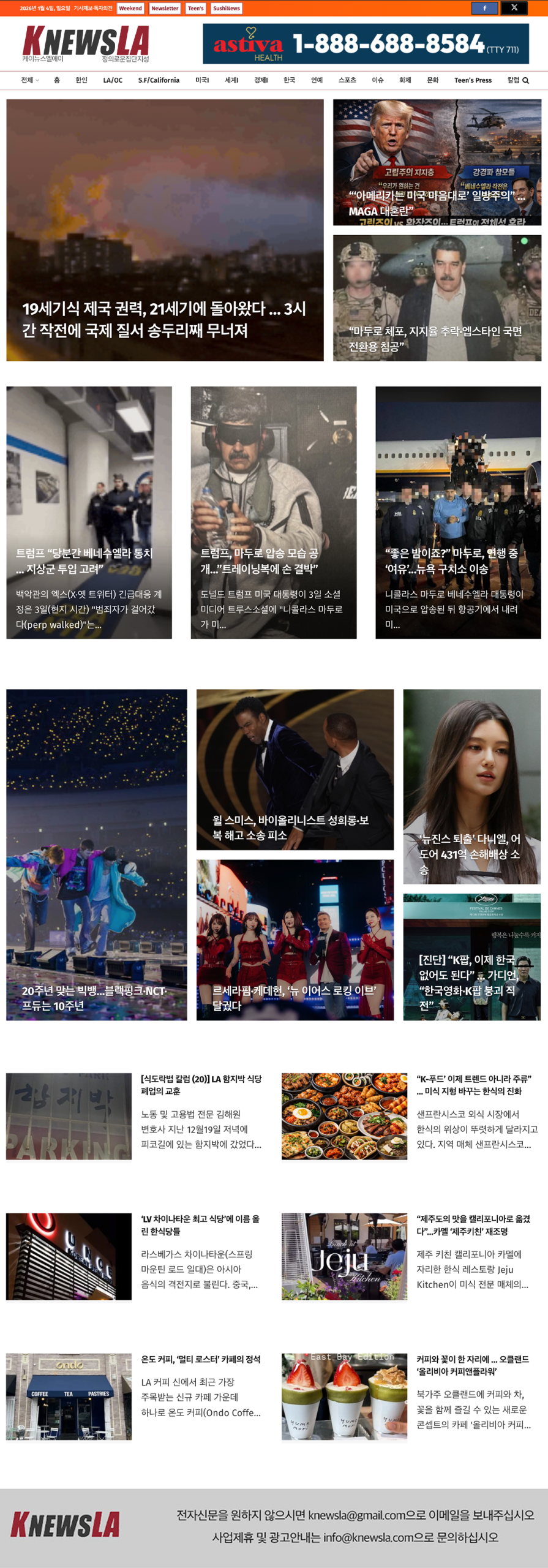 [K-News LA 뉴스레터] 2026년 1월 4일 일요일