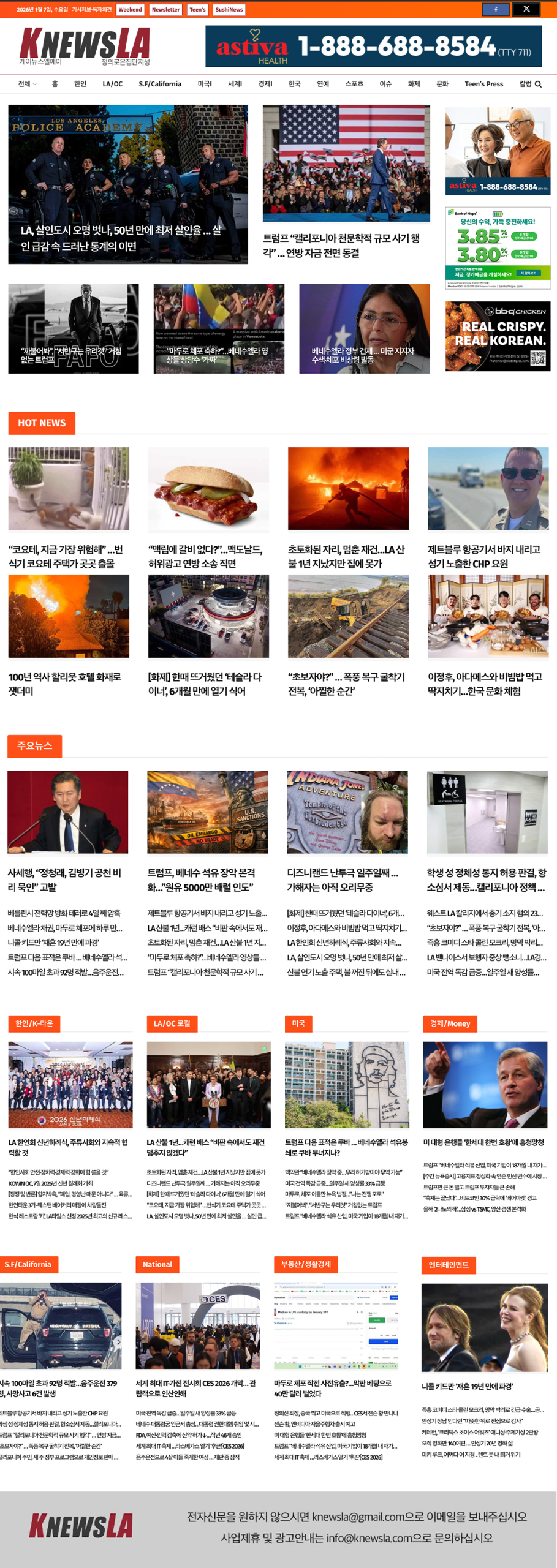 [K-News LA 뉴스레터] 2026년 1월 7일 수요일