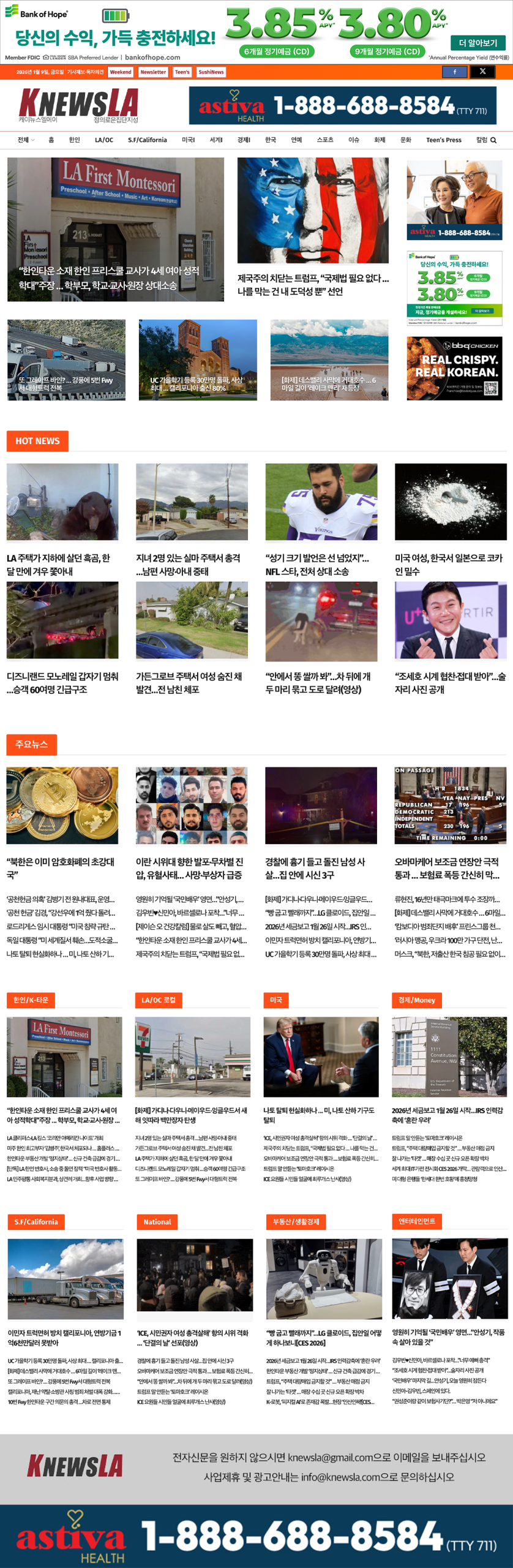 [K-News LA 뉴스레터] 2026년 1월 9일 금요일