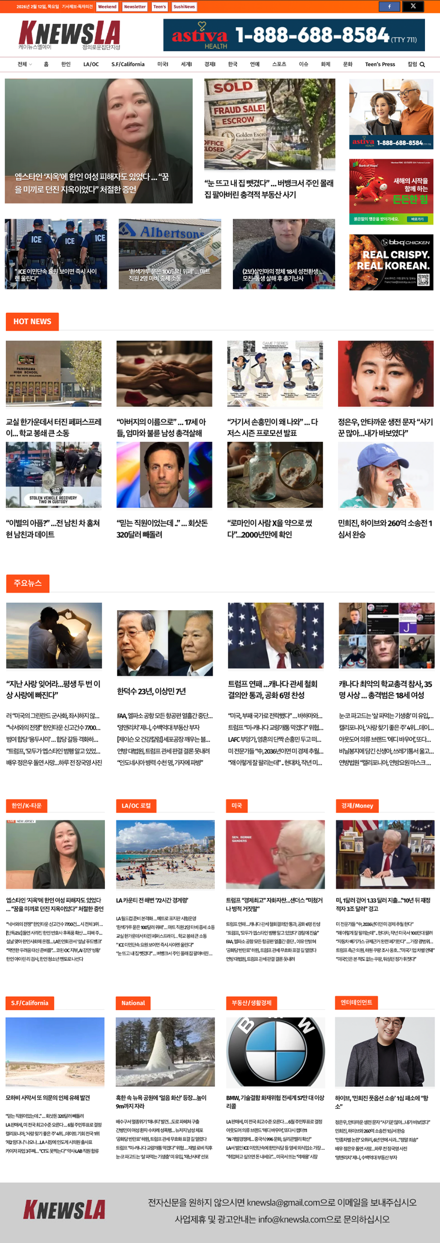[K-News LA 뉴스레터] 2026년 2월 12일 목요일