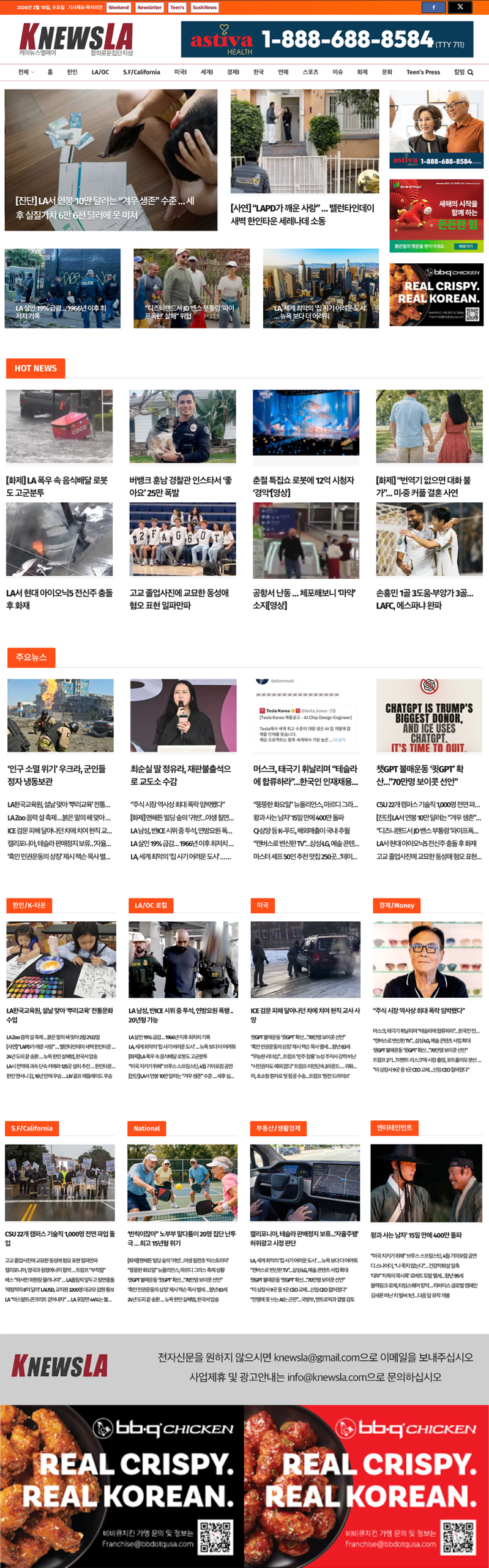 [K-News LA 뉴스레터] 2026년 2월 18일 수요일