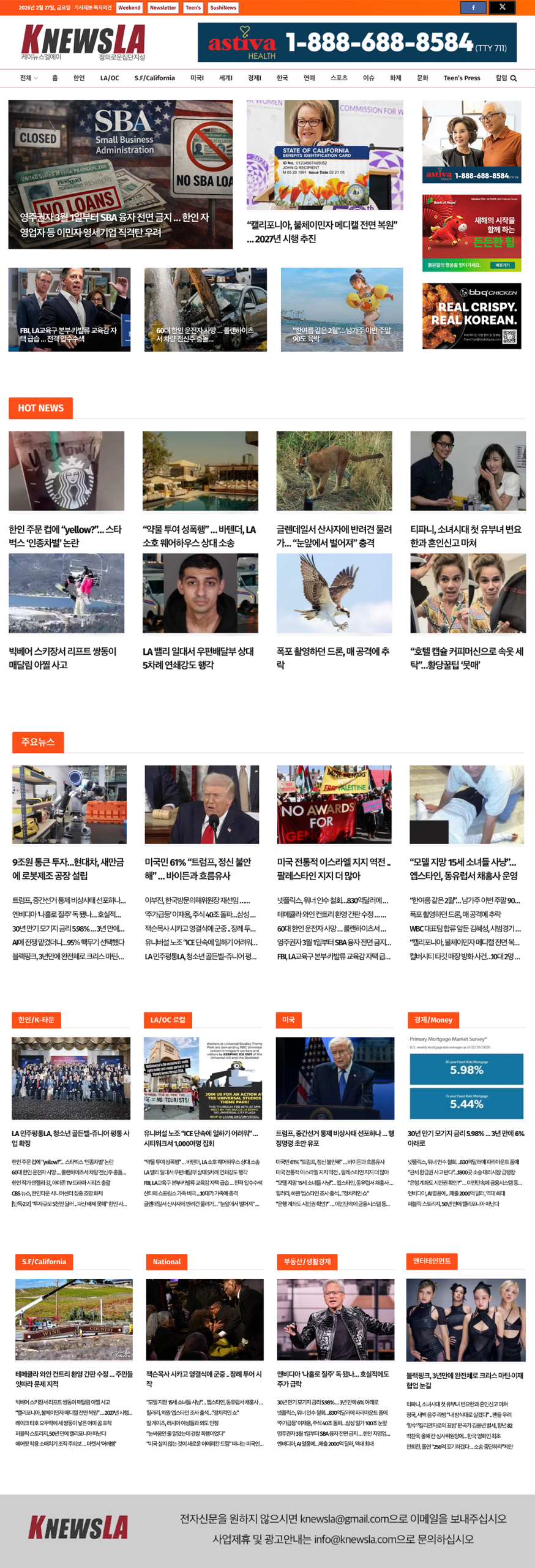 [K-News LA 뉴스레터] 2026년 2월 27일 금요일
