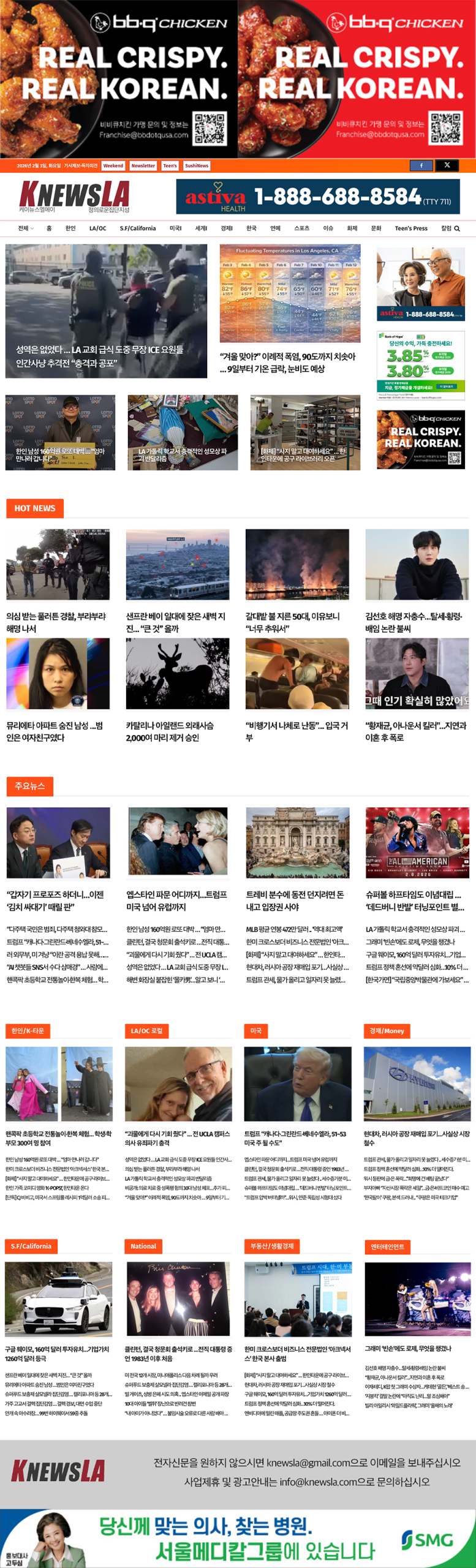 [K-News LA 뉴스레터] 2026년 2월 3일 화요일