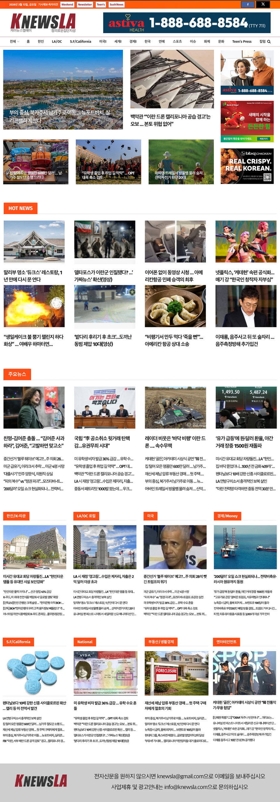[K-News LA 뉴스레터] 2026년 3월 13일 금요일